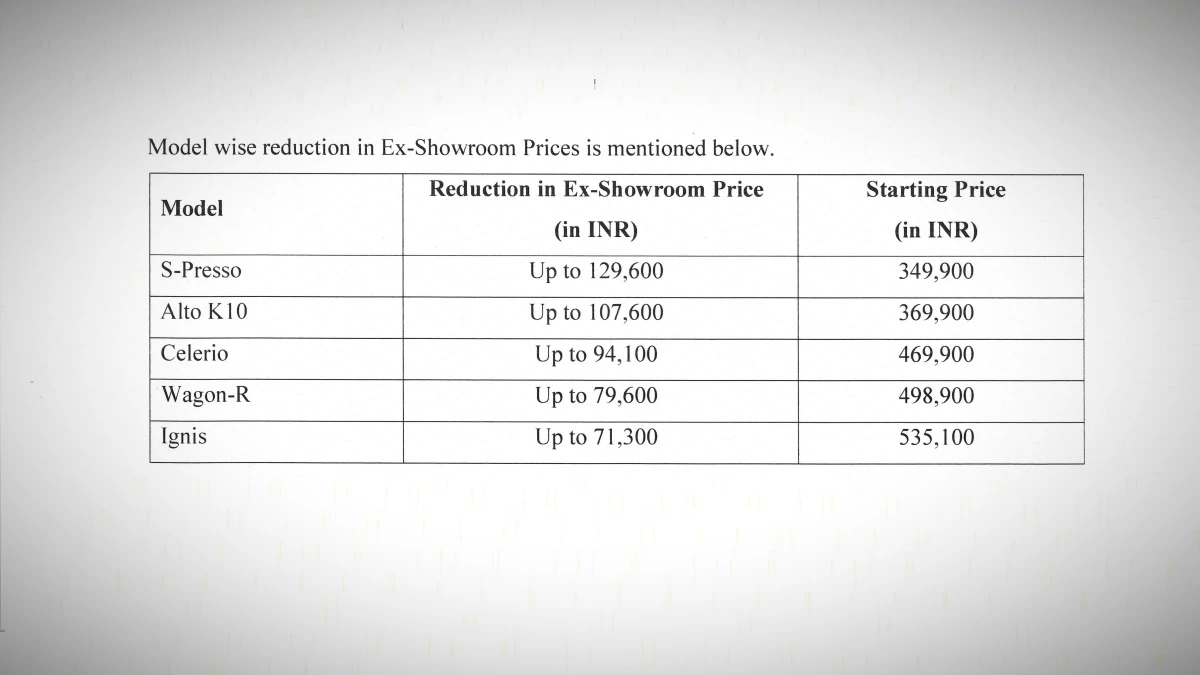 कंपनी ने कहा है कि वह GST में आई छूट का पूरा लाभ ग्राहकों तक देगी। कुछ प्रमुख मॉडल्स की शुरुआती एक्स-शोरूम कीमतें इस प्रकार अपडेट की गई हैं: